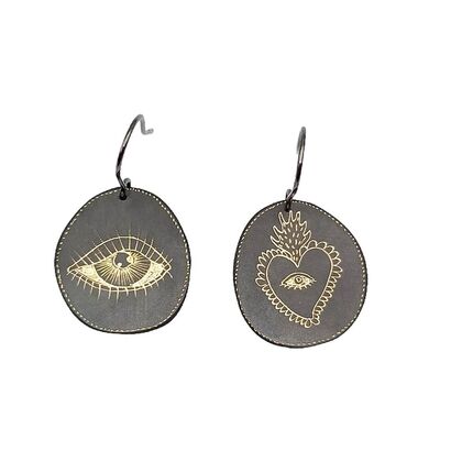 Χειροποίητα σκουλαρίκια Αυγή χαραγμένα στο χέρι απο ασήμι 925 και οξειδωμένο ορείχαλκο
