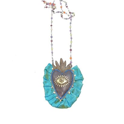 Κολιέ καρδιά με μεταξωτό ύφασμα