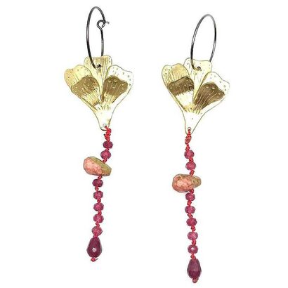 Χειροποίητα σκουλαρίκια ''Golden thorns heart'' απο μπρούτζο και κόκκινη πέτρα