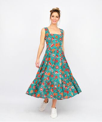Φόρεμα maxi με λουλούδια σε αποχρώσεις του πράσινου,του μπλε και του κόκκινου