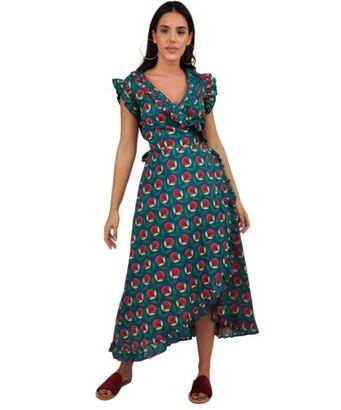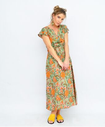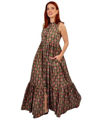 Φόρεμα maxi με λουλούδια σε αποχρώσεις του πράσινου και του κόκκινου