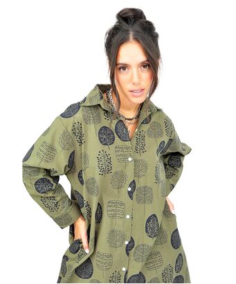 Φόρεμα πουκάμισο με φύλλα σε πράσινες αποχρώσεις