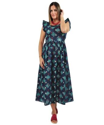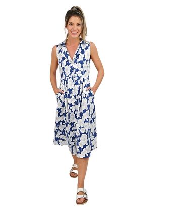 Φόρεμα midi με λουλούδια σε αποχρώσεις του λευκού και του μπλε