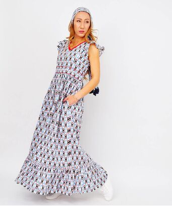 Φόρεμα maxi με λουλούδια σε αποχρώσεις του λευκού και του μπλε