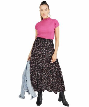 Γυναικεία μαύρη maxi φούστα με φλοράλ μοτίβο