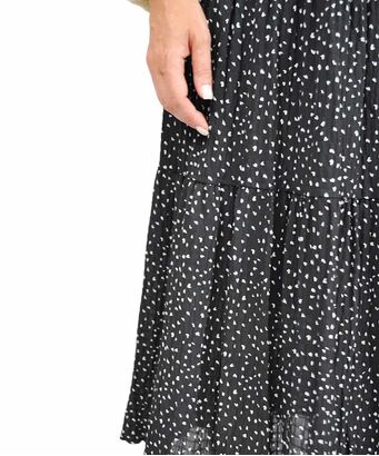 Γυναικεία μαύρη maxi φούστα με μοτίβο λευκές καρδιές