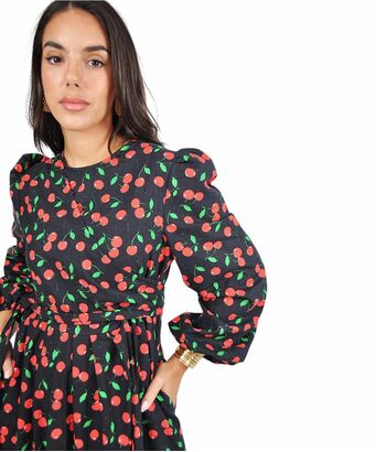 Γυναικείο χειροποίητο μαύρο maxi φόρεμα με κεράσια