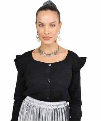 Μαύρη ζακέτα με βολάν στα μανίκια και κουμπιά