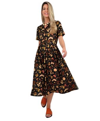 Φόρεμα πουκάμισο με φύλλα σε κίτρινες αποχρώσεις