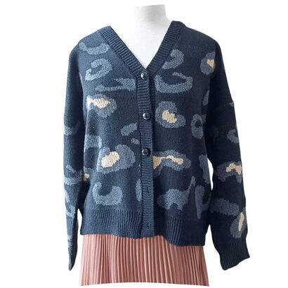 Γυναικεία casual πλεκτή μαύρη ζακέτα με animal print