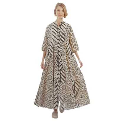 Γυναικείο boho φόρεμα μακρύ με μπεζ και μαύρα σχέδια