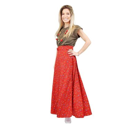 Κόκκινη φούστα maxi φάκελος με λουλούδια