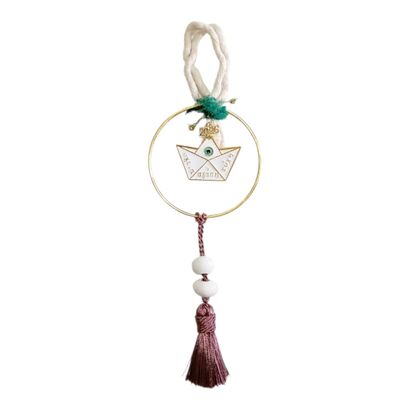 Χειροποίητο κρεμαστό γούρι με καράβι και κουδούνα