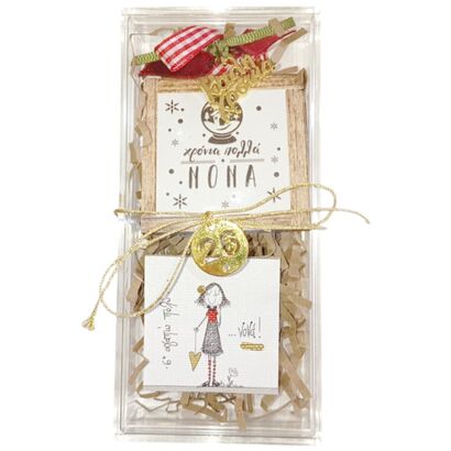 Χριστουγεννιάτικο γούρι για το 2026 ξύλινο κουτί με μαγνητάκι για τη νέα χρονιά με χιου...