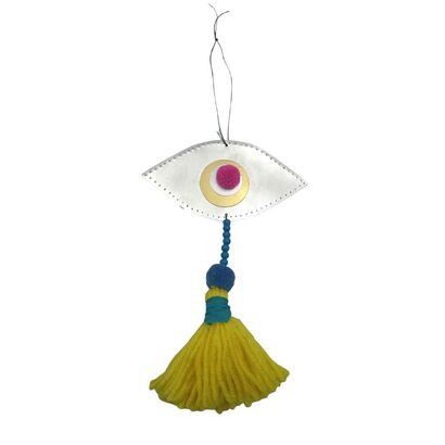 Διακοσμητικό γούρι μάτι με κίτρινη φούντα