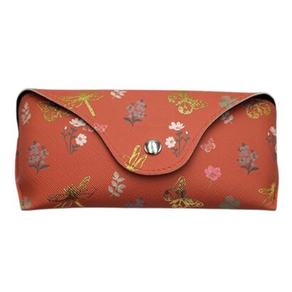 Κόκκινγη θήκη γυαλιών με λιβελούλες και λουλούδια