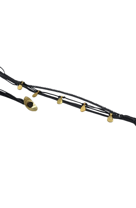 Με αιματίτη 2 χιλιοστά ταγιέ, μαύρη κηροκλωστή και κλείσιμο κουμπί και θηλιά.