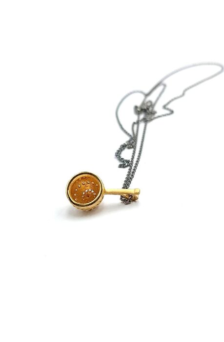 Κολιέ ancient Arabic strainer,ασήμι 925 επιχρυσωμένο και επιροδιωμένη αλυσίδα, μήκος αλυσίδας 80 εκ.