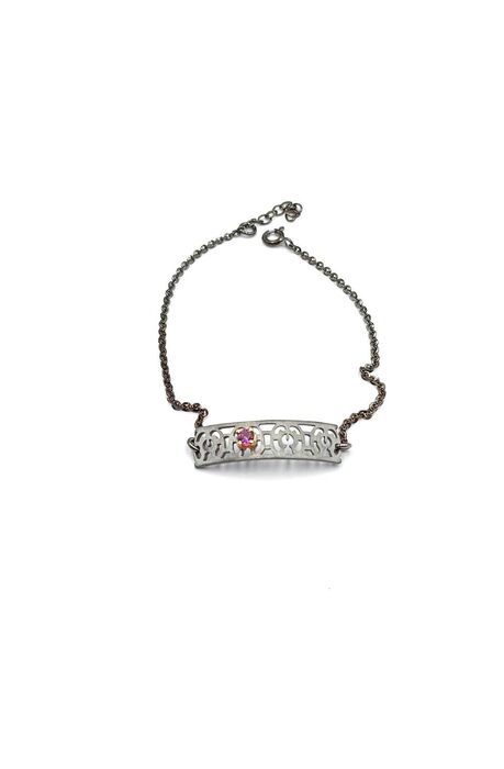 Χειροποίητο βραχιόλι απο επιροδιωμένο ασήμι 925 με πολύτιμη πέτρα ροδολίτη 3 χιλ.