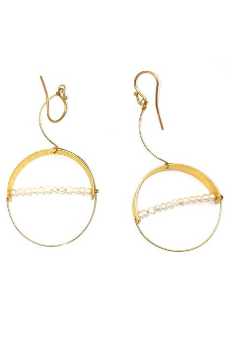 Χειροποίητα επιχρυσωμένα σκουλαρίκια κύκλοι με μαργαριτάρια.