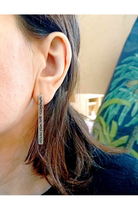 Χειροποίητα σκουλαρίκια, χαραγμένα στο χέρι με στίχους απο ποιήματα μεγάλων Ελλήνων ποιητών.