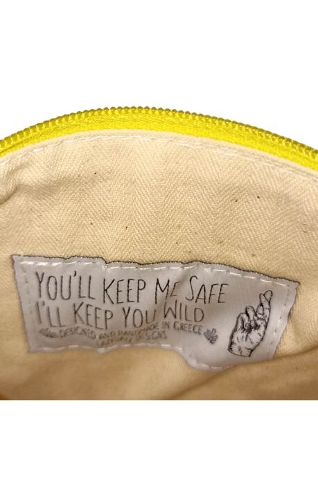 Έχει πρακτικό χερούλι για άνετο κράτημα και κλείνει με φερμουάρ.