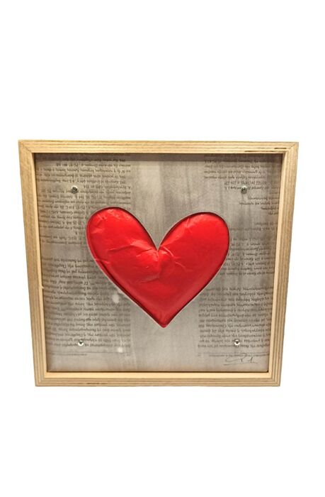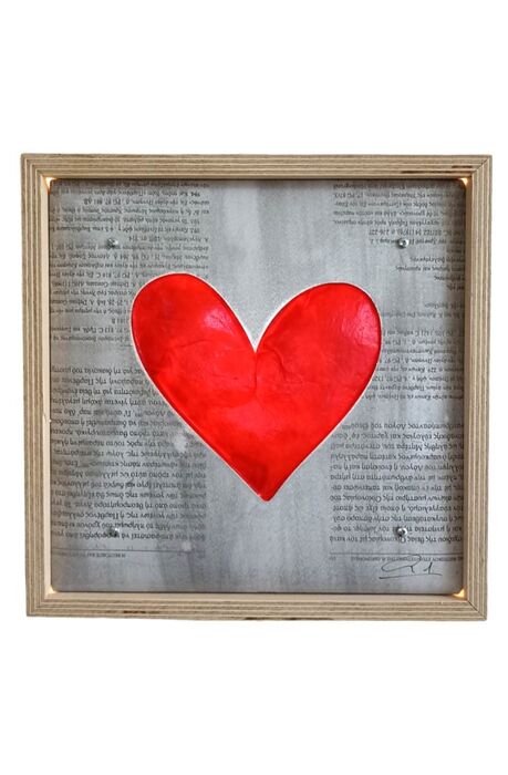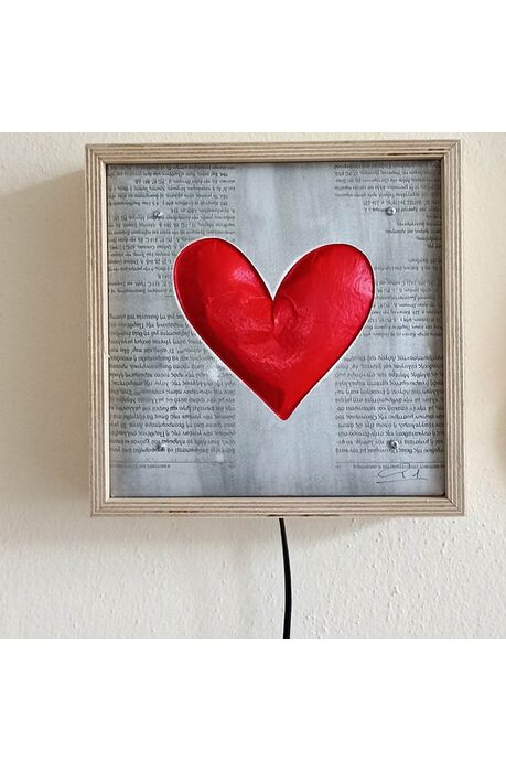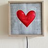 Χειροποίητο ξύλινο φωτιστικό, με κόκκινη καρδιά.