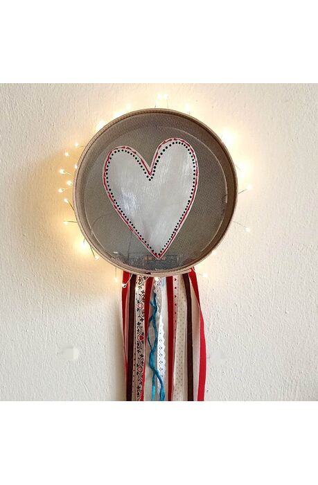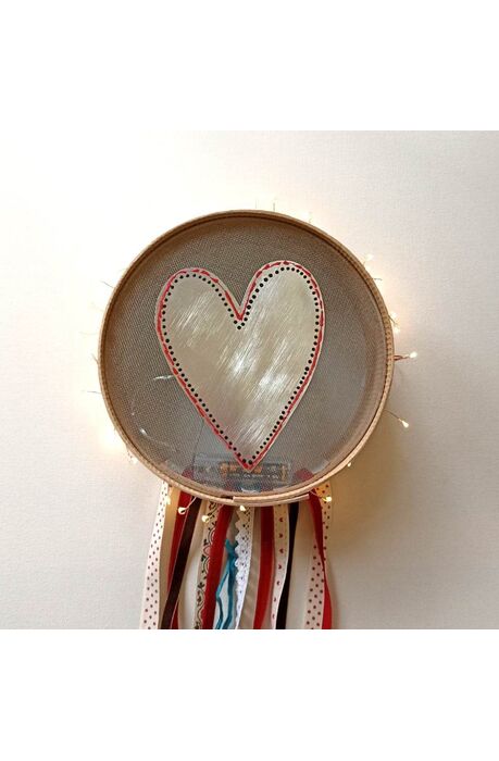 Χειροποίητο φωτιστικό σε ξύλινο τελάρο, με καρδιά.
