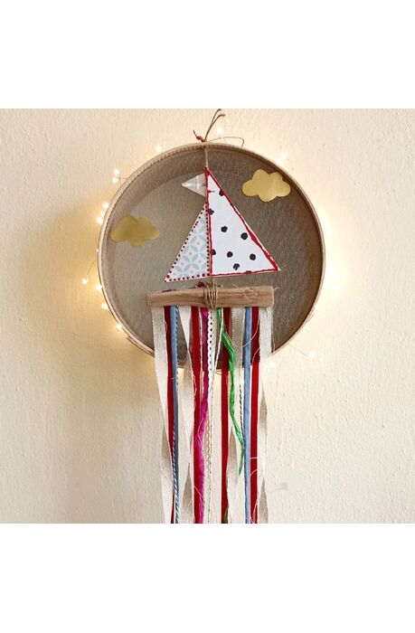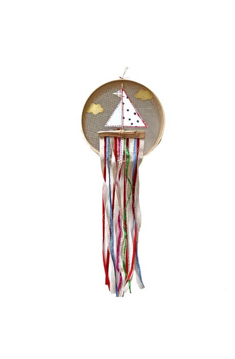 Είναι φτιαγμένο από ξύλο, βαμβακερές κορδέλες και φύλλα αλουμινίου.