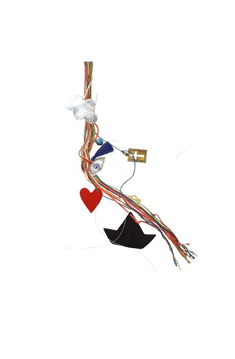 Με κρεμαστά στοιχεία, σταυρό, σύννεφο, καρδιά, καράβι και μάτι.