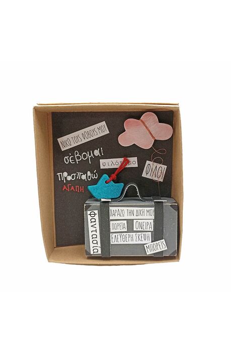 Χειροποίητη βαλίτσα φορτωμένη με ευχές και όνειρα.