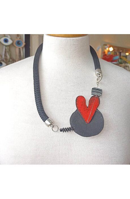 Χειροποίητο κολιέ με δερμάτινη καρδιά