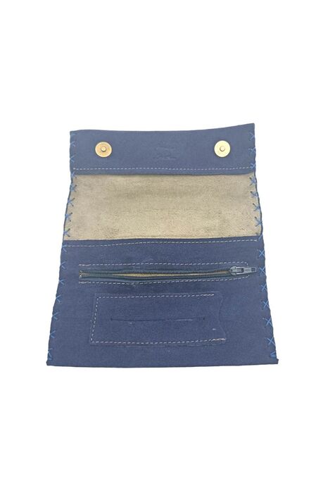 Χειροποίητη θήκη καπνού απο σουέντ μπλέ δέρμα, φτιαγμένη στην Ελλάδα.