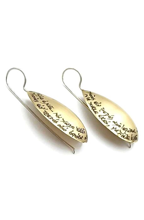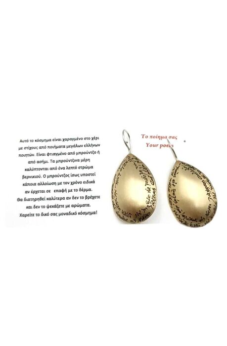 Χειροποίητα σκουλαρίκια χαραγμένα στο χέρι με στίχους απο ποιήματα μεγάλων Ελλήνων ποιητών.