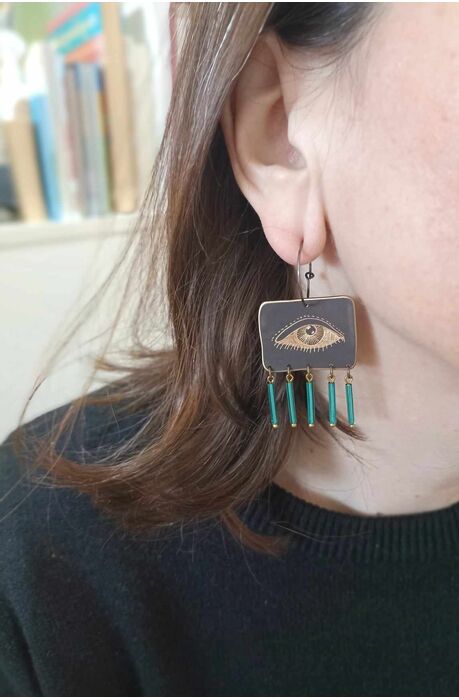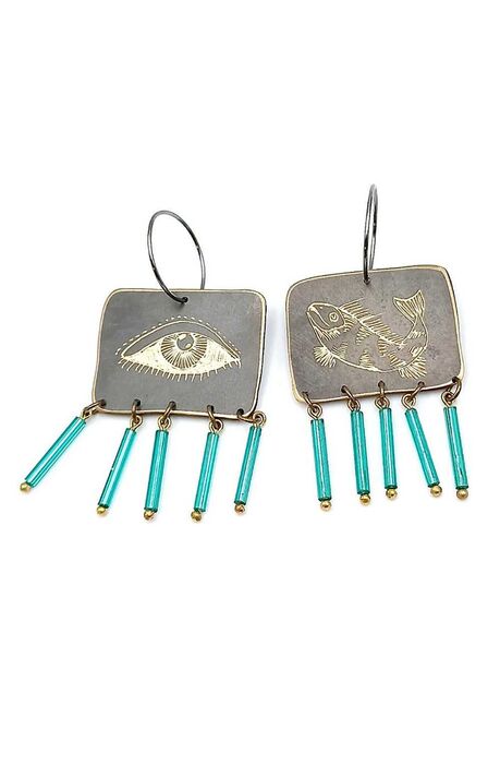 Γυναικεία κρεμαστά σκουλαρίκια , απο οξειδωμένο μπρούτζο χαραγμένο και επιροδιωμένο ασημένιο κούμπωμα 925.