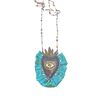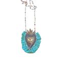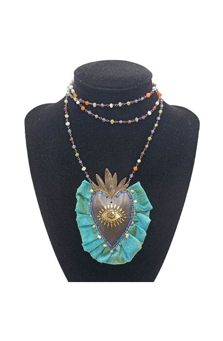Χειροποίητo κολιέ καρδιά, από οξειδωμένο μπρούτζο με χάραξη, με τυρκουάζ μεταξωτό ύφασμα.