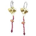 Χειροποίητα σκουλαρίκια με χάραξη, από οξειδωμένο μπρούτζο, ημιπολύτιμες πέτρες