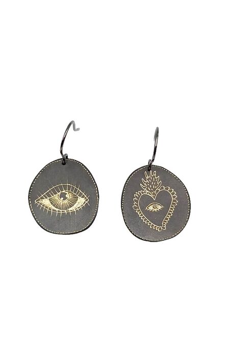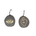 Γυναικεία κρεμαστά σκουλαρίκια , απο οξειδωμένο μπρούτζο χαραγμένο και επιροδιωμένο γάντζο 925.