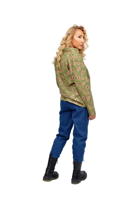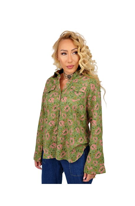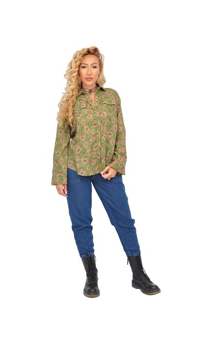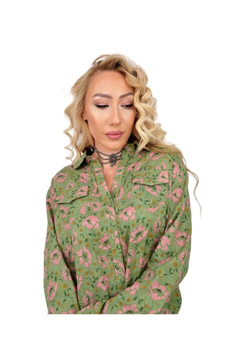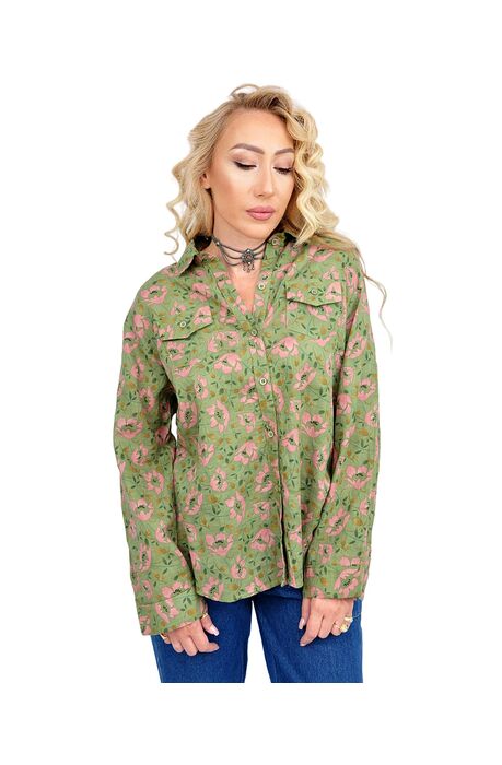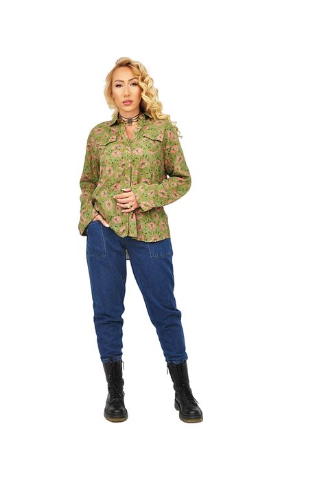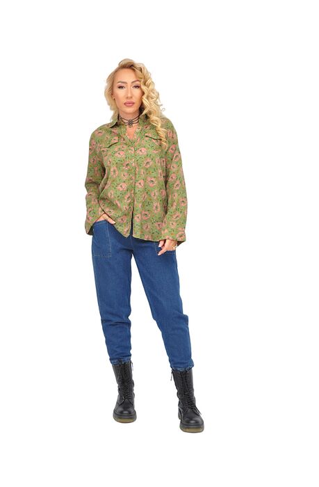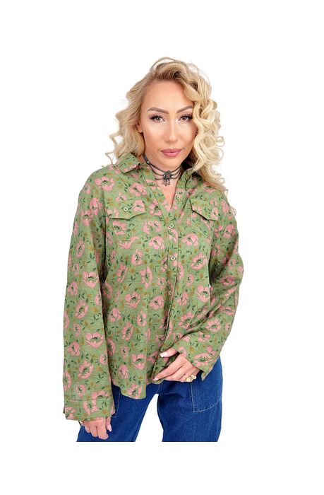 Γυναικείο πουκάμισο σε αποχρώσεις του πράσινου με λουλούδια σε χρώμα σάπιο μήλο.