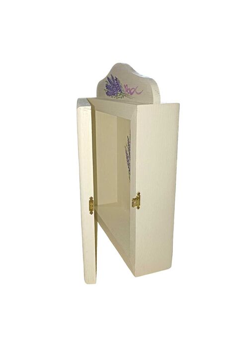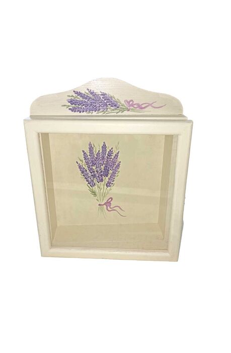 Ξύλινη χειροποίητη στεφανοθήκη, ζωγραφισμένη στο χέρι με λεβάντες,