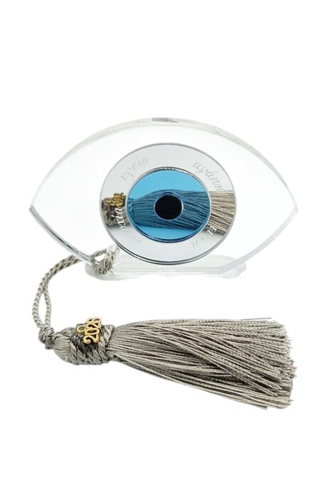 Χειροποίητο επιτραπέζιο γούρι μάτι, μπλε καθρέπτης με ευχές ( ευτυχία ,αφθονία ,υγεία ,αγάπη )