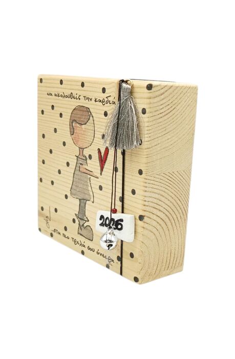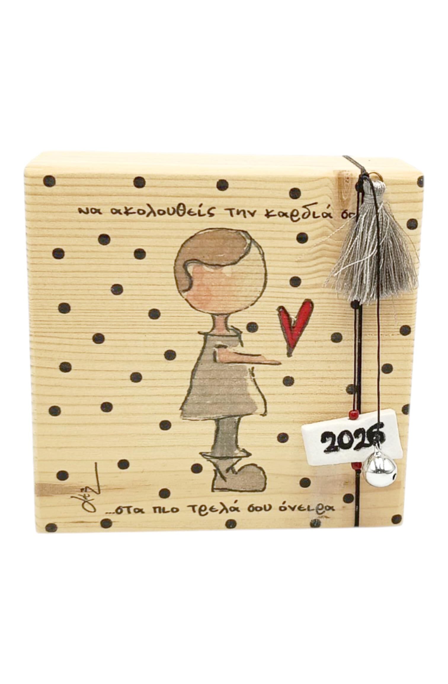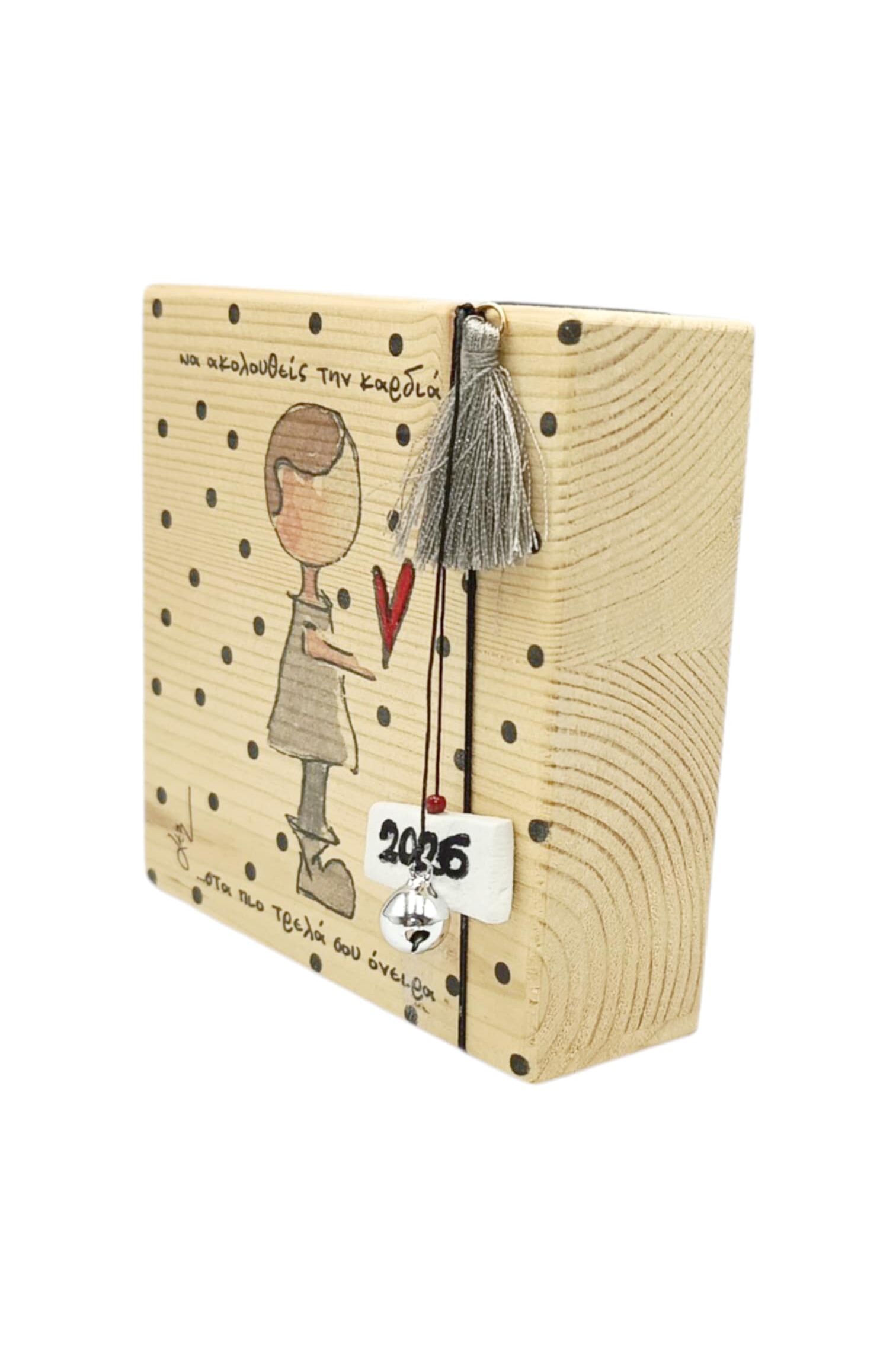 Χειροποίητο ξύλινο γούρι με ευχές για τη νέα χρονιά ''Να ακολουθείς την καρδιά σου...''