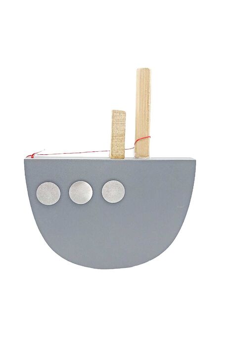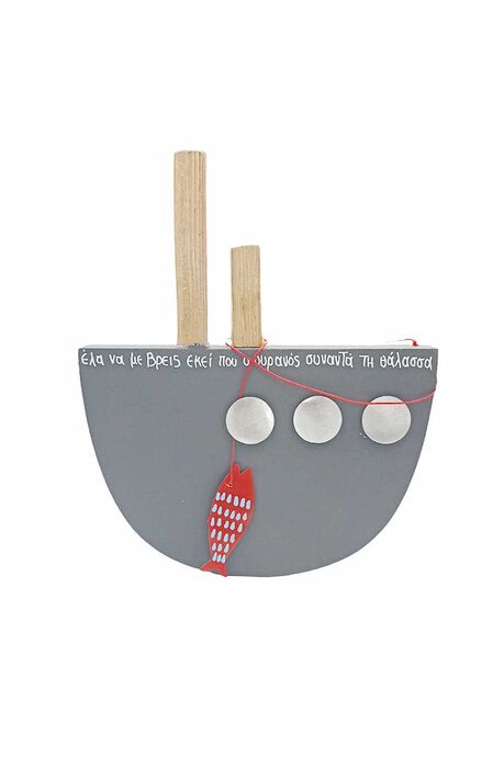 Ξύλινο χειροποίητο καράβι με ψάρι, ζωγραφισμένο στο χέρι.