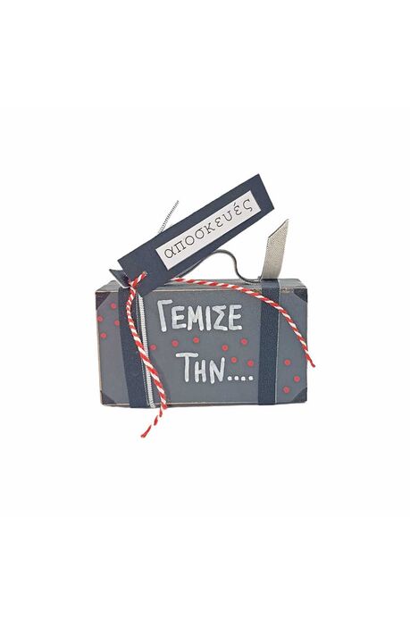 Χειροποίητη ανοιγόμενη βαλίτσα ,ζωγραφισμένη στο χέρι και φορτωμένη με ευχές για τη νέα χρονιά.