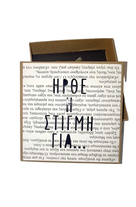 Μέσα σε χάρτινο κράφτ κουτί που έχει γραμμένο το μήνυμα, ''ήρθε η στιγμή για.. ''στην εξωτερική πλευρά..