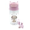 Παιδικό ροζ παγούρι με σχέδιο γάτα με ακουστικά, με ενσωματωμένο καλαμάκι