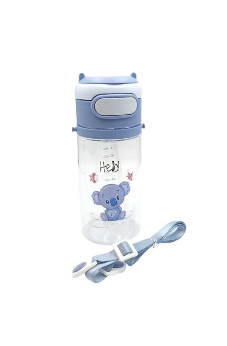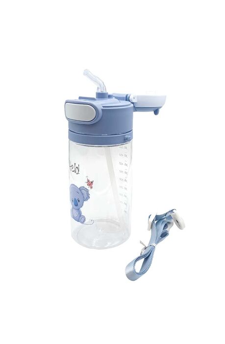 Παιδικό μπλε παγούρι με σχέδιο αρκουδάκι, με ενσωματωμένο καλαμάκι