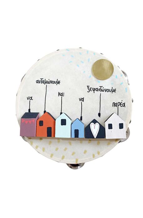 Χειροποίητο διακοσμητικό ντέφι, με σπιτάκια.