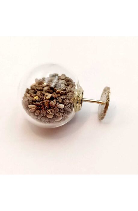 Χειροποίητο καρφωτό, μονό σκουλαρίκι γυάλινη σφαίρα γεμισμένη με σπόρους chia.