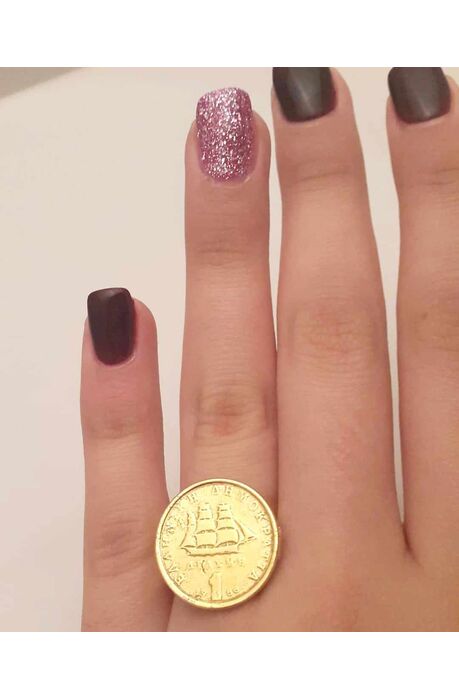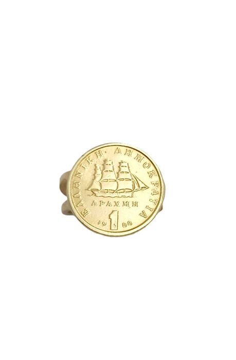 Χειροποίητο vintage δαχτυλίδι δραχμή απο επιχρυσωμένο ασήμι 925.